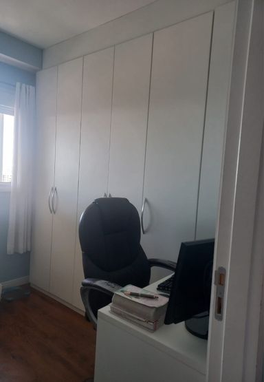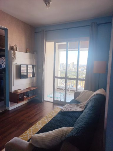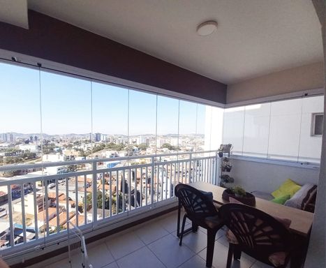 Apartamento com 62m² de área construída, 2 dormitórios sendo 1 suíte, sala para 2 ambientes, varanda ampla com fechamento de vidro, vista livre, banheiro social, aquecimento a gás, cozinha americana, móveis planejados em todos os ambientes, piso laminado na sala e dormitórios e 1 vaga de garagem.