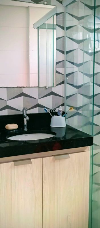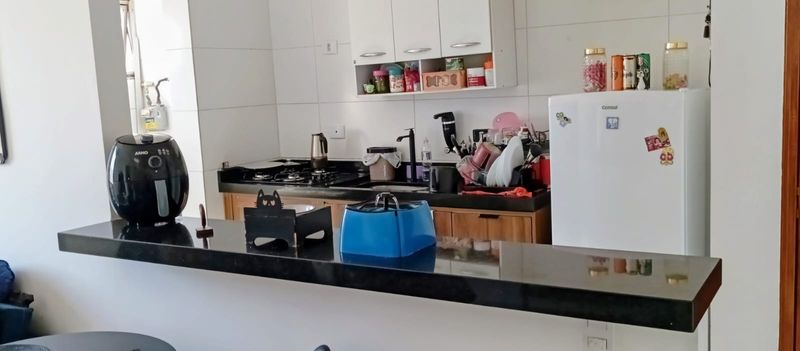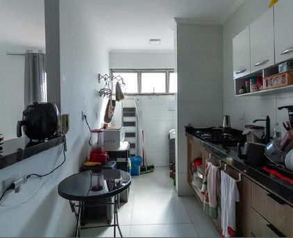 Apartamento com 57m² de área construída, 2 dormitórios, banheiro social, sala para 2 ambientes, andar alto, piso porcelanato, cozinha americana e 1 vaga de garagem.