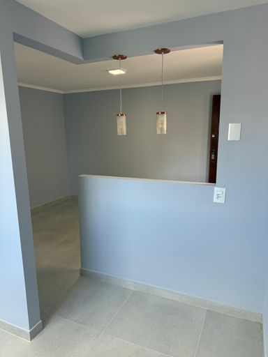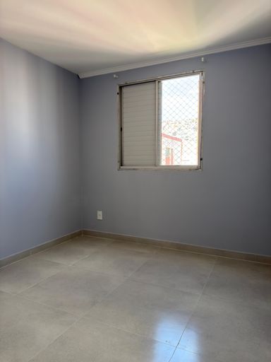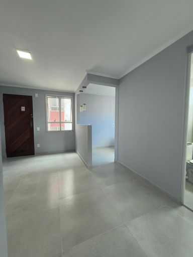 Apartamento com 43m² de área construída, 2 dormitórios, sala para 2 ambientes, cozinha ampla, área de serviço, piso porcelanato e 1 vaga de garagem.