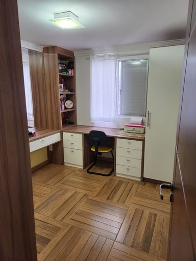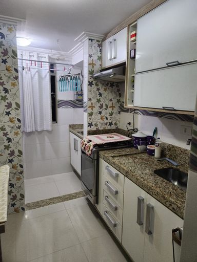 Condomínio com portaria 24 horas, padaria, mercado e área de lazer.