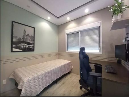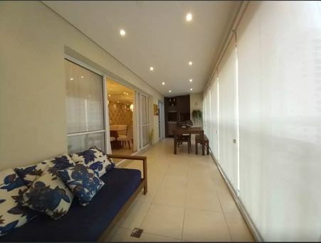 Apartamento com 135m² de área construída, 3 dormitórios sendo 3 suítes, sala para 2 ambientes, varanda gourmet com churrasqueira a carvão, fechamento de vidro, móveis planejados em todos os ambientes, piso laminado na sala e dormitórios, cozinha com armários, aquecimento a gás, entrada social e serviço, piso porcelanato nas área frias e 2 vagas de garagem cobertas.