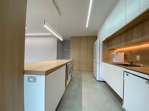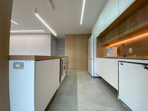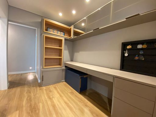 Apartamento com 151m² de área construída, 3 dormitórios sendo 2 suítes, ar condicionado, piso laminado nos dormitórios, sala ampliada e integrada a varanda gourmet, churrasqueira a carvão, fechamento de vidro, piso porcelanato, cozinha em ilha, armários planejados em todos os ambientes, acabamento de alta qualidade em todos os ambientes e 2 vagas de garagem cobertas com depósito privativo.