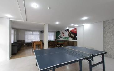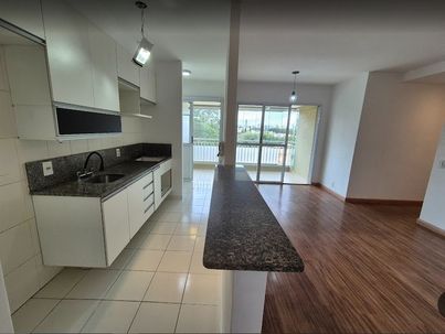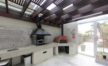 Apartamento com 78m² de área construída, 3 dormitórios sendo 1 suíte, sala para 2 ambientes, varanda gourmet com fechamento de vidro e churrasqueira a carvão, piso laminado na sala e dormitórios, cozinha americana com armários e 2 vagas de garagem.