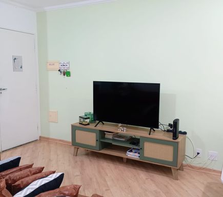 Apartamento com 61m² de área construída, 3 dormitórios sendo 1 suíte, sala para 2 ambientes, varanda com vista livre, piso laminado na sala e dormitórios, cozinha americana com armários, banheiro social, aquecimento a gás, andar alto, móveis planejados em todos os ambientes e 1 vaga de garagem.