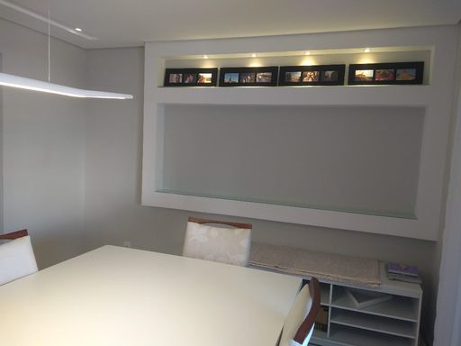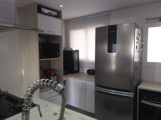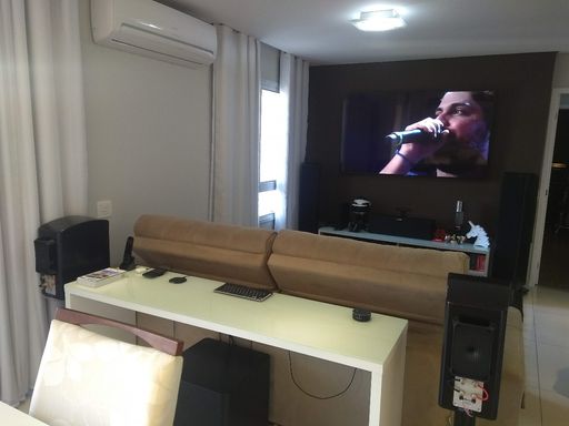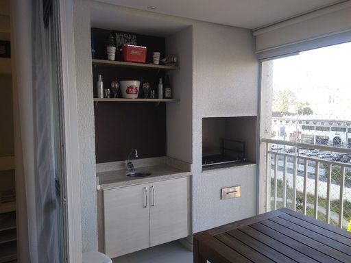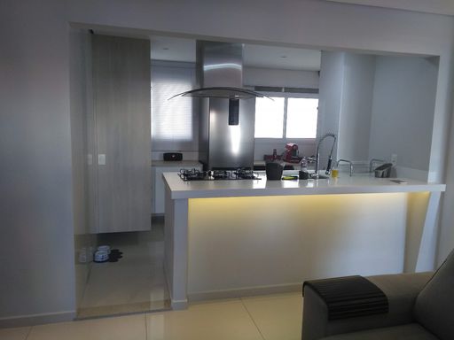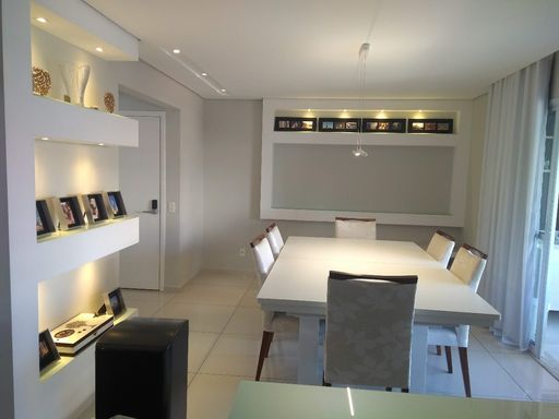 Apartamento com 123m² de área construída, 3 dormitórios sendo 1 suíte, sala para 2 ambientes integrada a varanda gourmet, churrasqueira a carvão, piso porcelanato, móveis planejados, cozinha americana, piso laminado nos dormitórios e 2 vagas de garagem cobertas.