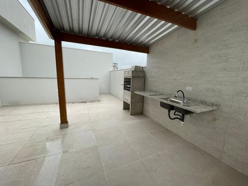 Cobertura com 105m² de área construída, 2 dormitórios sendo 1 suíte, sala para 2 ambientes, piso porcelanato, 3 banheiros, cozinha conceito aberto com pia de granito, área gourmet com amplo quintal e churrasqueira revestida e 2 vagas de garagem.
