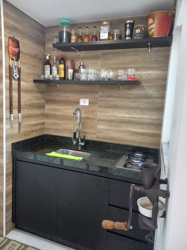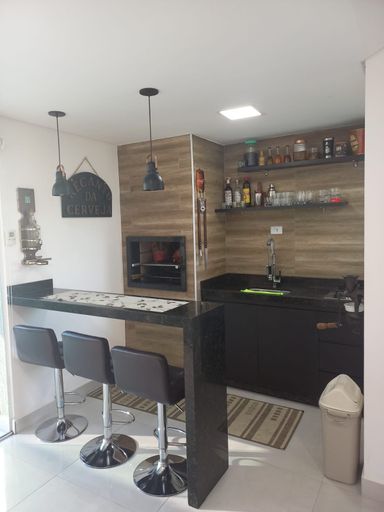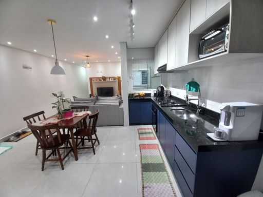 Cobertura de 130m² de área construída com 2 dormitórios sendo 1 suíte, armários planejados nos dormitórios, sala de jantar, sala de televisão, cozinha em conceito aberto com armários, piso porcelanato em todos os ambientes, possibilidade de reverter para um 3 dormitório, área gourmet com pia, cooktop, balcão de granito e churrasqueira a carvão e amplo quintal com espaço para uma jacuzzi ou piscina, infraestrutura para ar condicionado e 2 vagas de garagem.