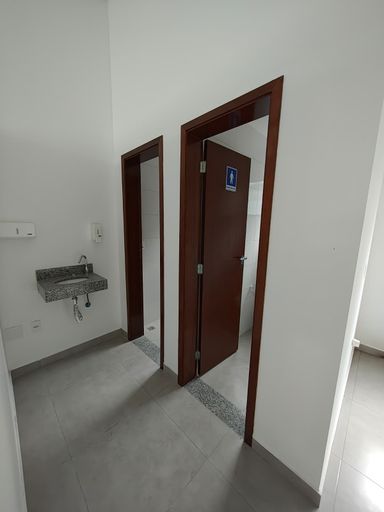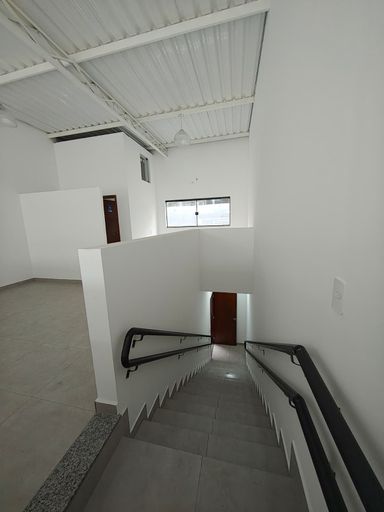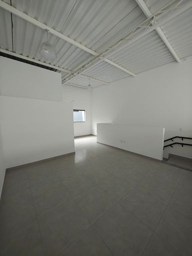 Salão Comercial com 134m² de área construída, pé direito de 6m, mezanino, 3 banheiros e 4 vagas.