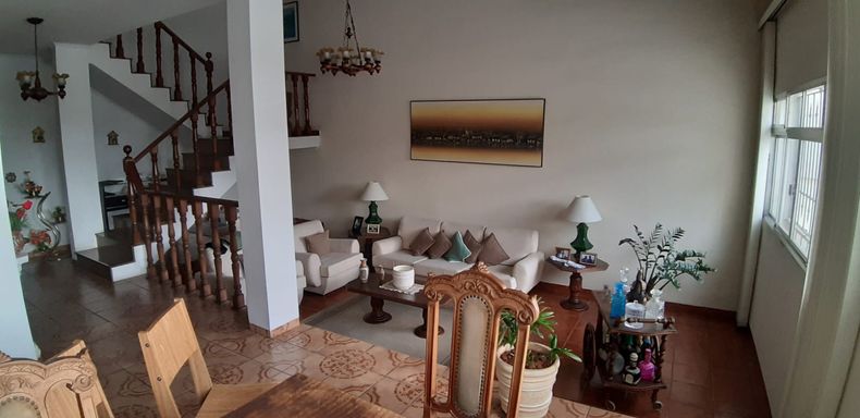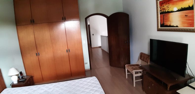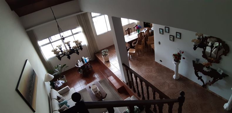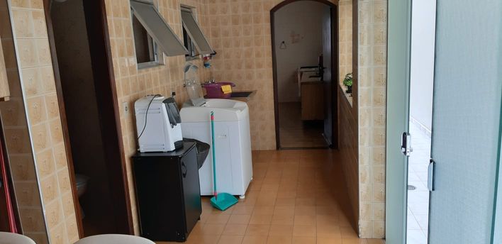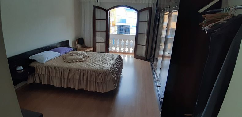Sobrado com 320m² de área construída, terreno com 10m² de largura por 30m² de comprimento, 3 dormitórios sendo 1 suíte, varanda, piso laminado nos dormitórios, 4 banheiros, 3 salas, cozinha ampla com armários, quintal e 5 vagas de garagem.