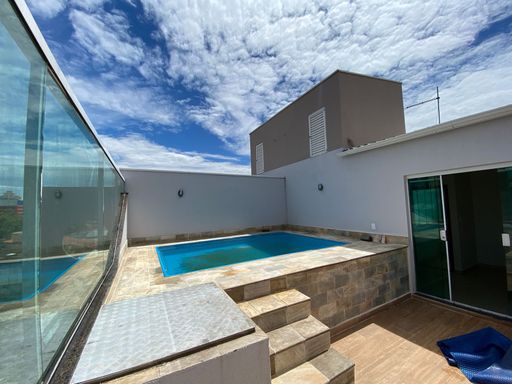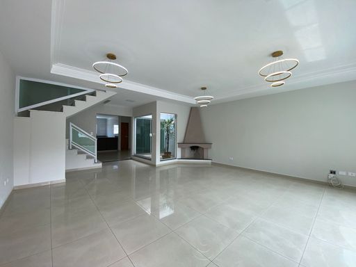 Sobrado tríplex 293m² de área construída, sala em conceito aberto, lareira, cozinha ampla com armários, jardim de inverno, piso porcelanato, escritório, 3 dormitórios todos suítes e com varanda, closet, área gourmet, piscina, dormitório de empregada, 6 banheiros e 5 vagas.