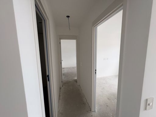 Apartamento novo com 68m² de área construída, 2 dormitórios sendo 1 suíte, sala para 2 ambientes varanda com vista livre, banheiro social, cozinha americana, piso de cerâmica nas área frias, contrapiso na sala e dormitórios e 1 vaga de garagem.