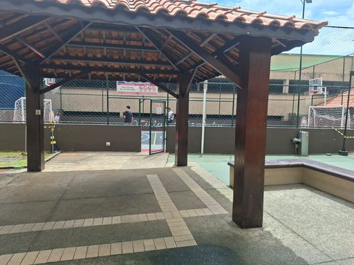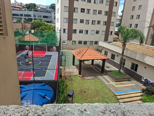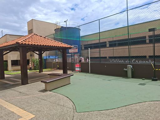 Condomínio com portaria 24 horas e área de lazer.