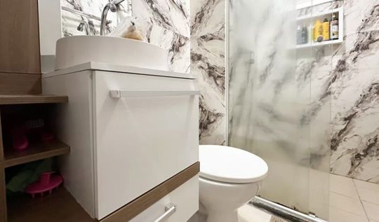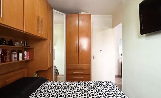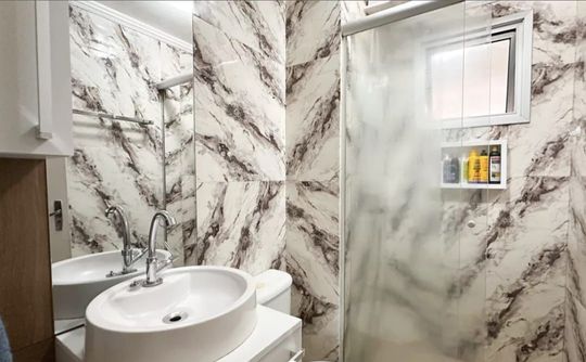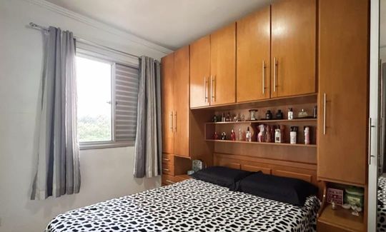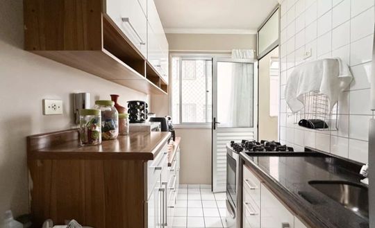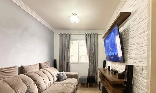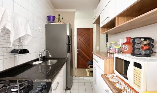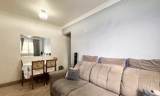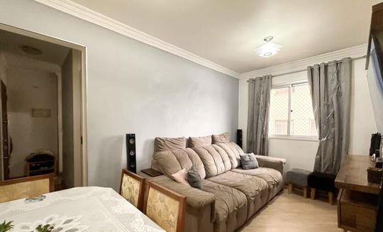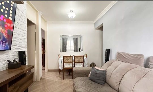Apartamento com 47m² de área construída, 2 dormitórios, sala para 2 ambientes, cozinha ampla, armários planejados em todos os ambientes, banheiro social e 1 vaga de garagem.