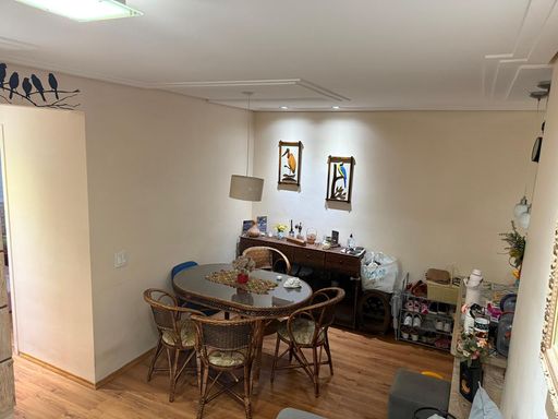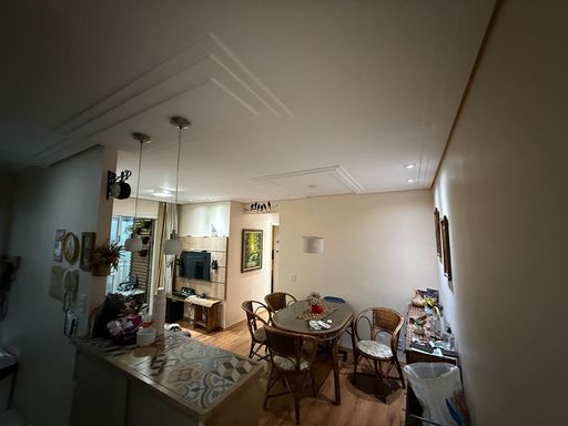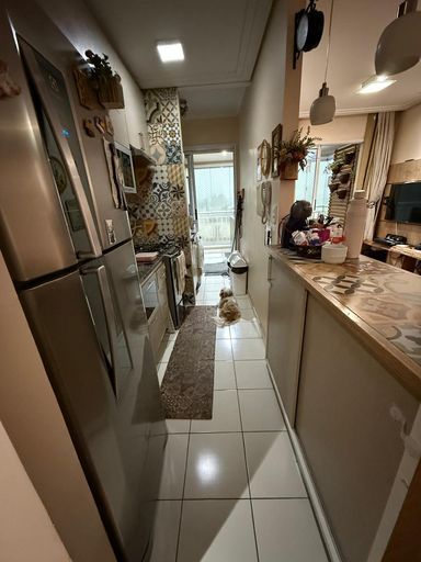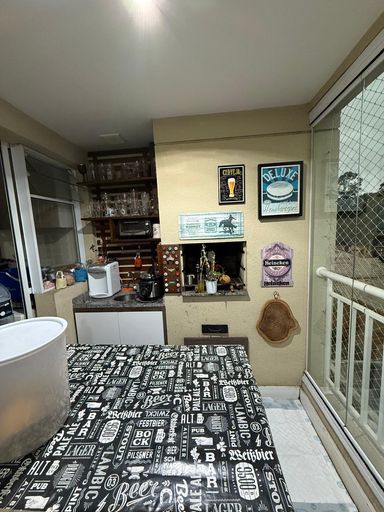 Apartamento com 67m² de área construída, sala para 2 ambientes, varanda gourmet com churrasqueira a carvão, cozinha americana com armários, banheiros com aquecimento a gás, piso laminado na sala e dormitórios, 2 dormitórios sendo 1 suíte, móveis planejados e 1 vaga de garagem.