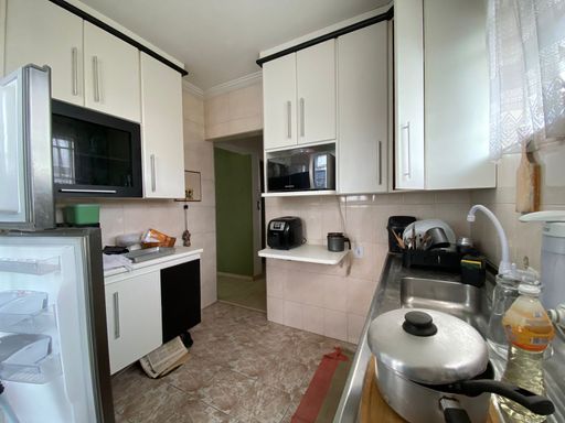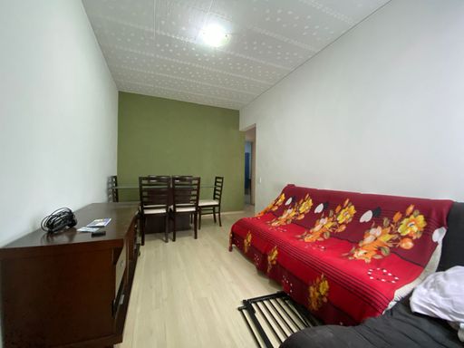 Apartamento com 56m² de área construída, 2 dormitórios, sala para 2 ambientes, cozinha ampla com armários, banheiro social, piso laminado na sala e dormitórios e 1 vaga de garagem.