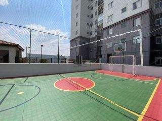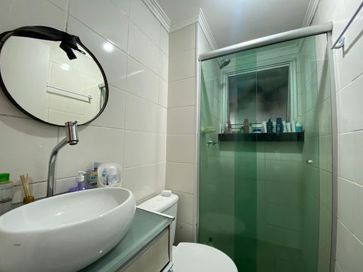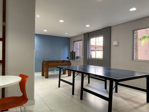 Apartamento Garden com 48m² de área construída, 2 dormitórios, sala para 2 ambientes, quintal com telhado retrátil, cozinha americana, banheiro social, piso porcelanato e 1 vaga de garagem.