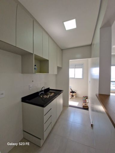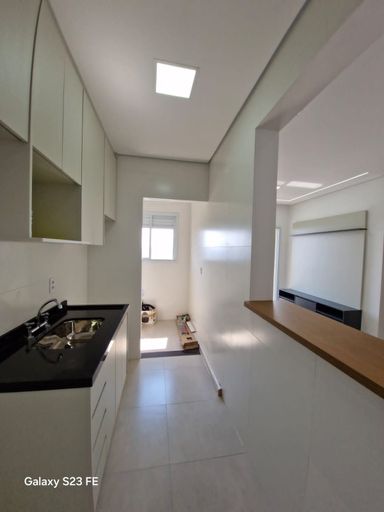 Apartamento novo com 54m² de área construída, 2 dormitórios, sala para 2 ambientes, varanda gourmet preparada para instalação da churrasqueira a carvão, piso laminado na sala e dormitórios, cozinha americana com armários planejados, piso porcelanato nas área frias, andar alto e 1 vaga de garagem coberta e demarcada.