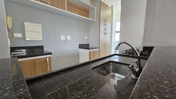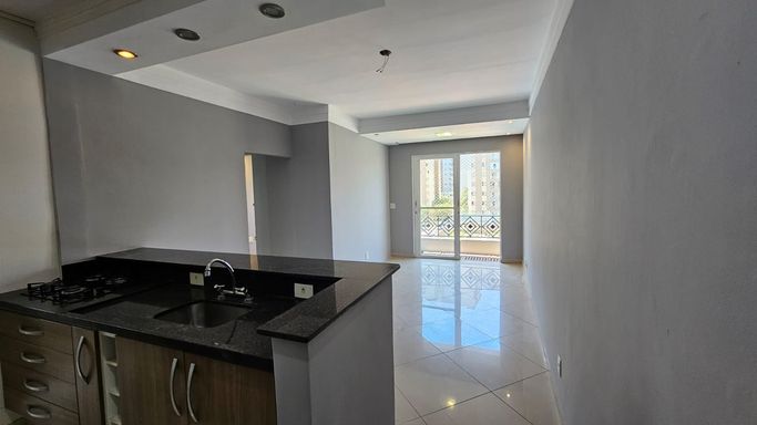 Apartamento com 65m² de área construída, 3 dormitórios sendo 1 com armários, piso de cerâmica em todos os ambientes, sala para 2 ambientes com varanda, cozinha americana com armários planejados e cooktop, banheiro social e 1 vaga de garagem.