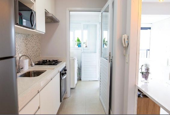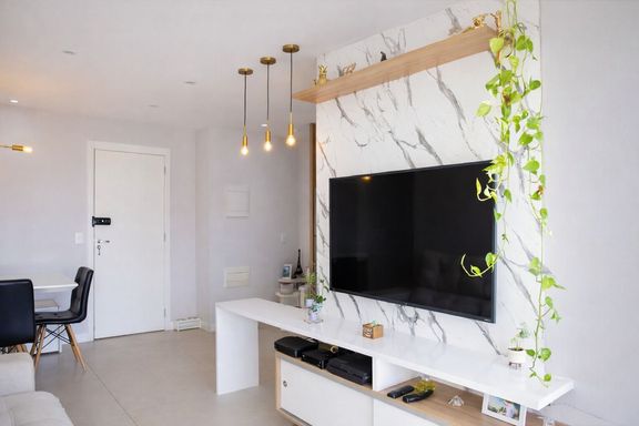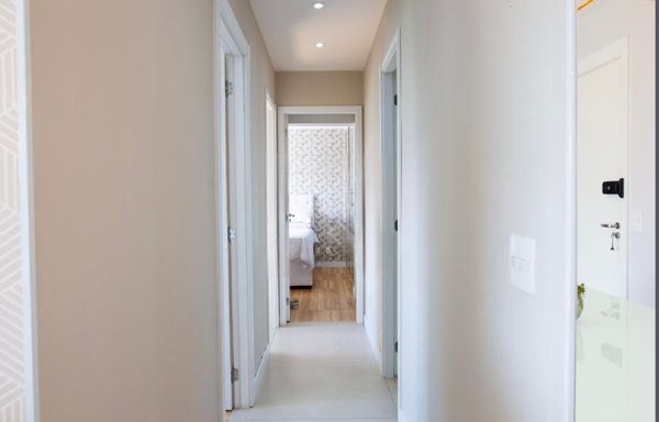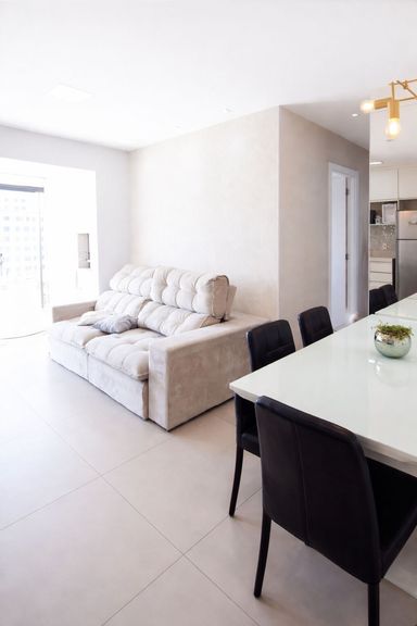 Apartamento com 75m² de área construída, 3 dormitórios sendo 1 suíte, sala para 2 ambientes integrada a varanda gourmet, churrasqueira a carvão, fechamento de vidro na varanda, cozinha americana, armários em todos os ambientes, piso porcelanato, piso laminado nos dormitórios, aquecimento a gás e 1 vaga de garagem coberta.