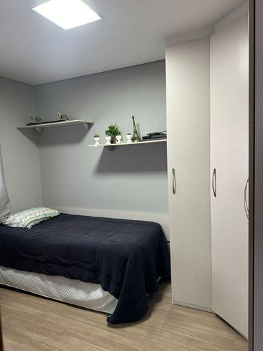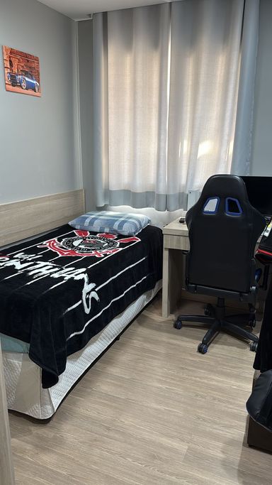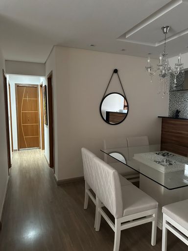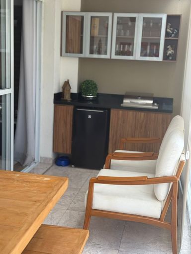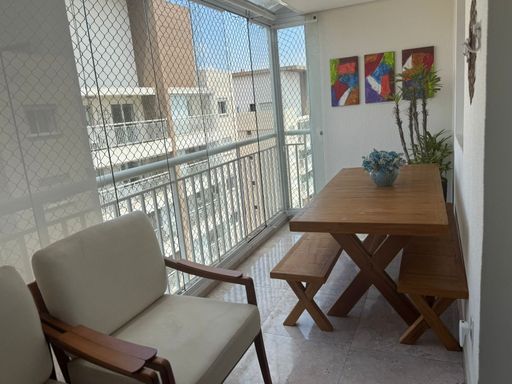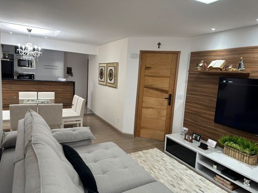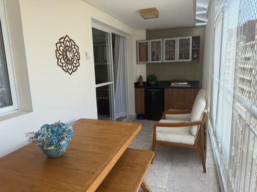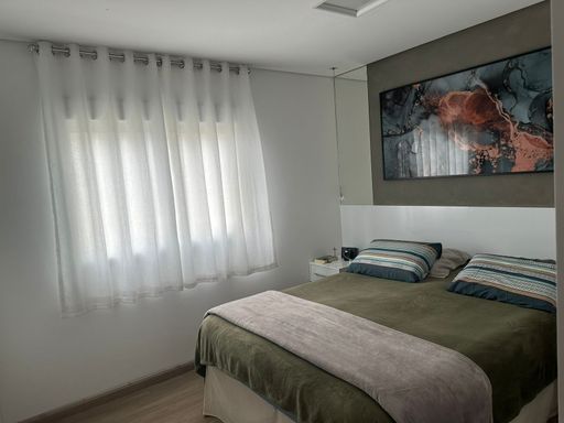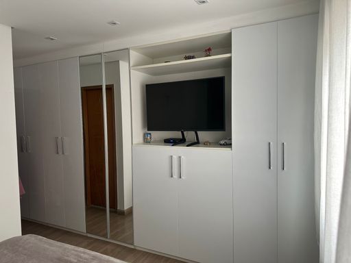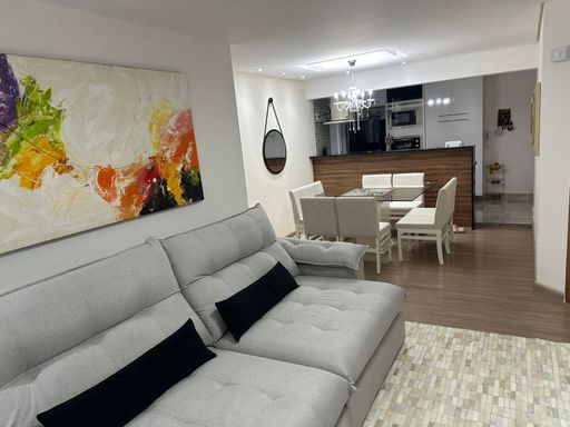 Apartamento com 104m² de área construída, 3 dormitórios sendo 1 suíte, sala para 2 ambientes, andar alto, varanda gourmet, piso laminado na sala e dormitórios, cozinha americana, armários planejados em todos os ambientes, banheiro social, lavabo e 2 vagas de garagem cobertas.
