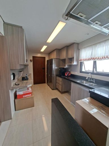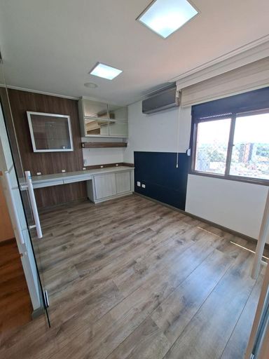 Apartamento com 155m² de área construída, 3 dormitórios sendo 3 suítes, sala para 2 ambientes, varanda com vista livre, andar alto, escritório, móveis planejados em todos os ambientes, 5 banheiros, piso laminado na sala e dormitórios, piso porcelanato na cozinha e banheiros, cozinha ampla com armários e 3 vagas de gagagem.