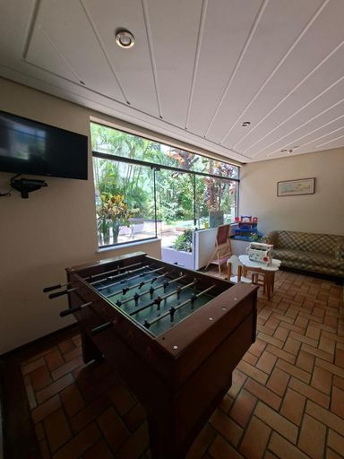 Condomínio com portaria 24 horas e área de lazer.
