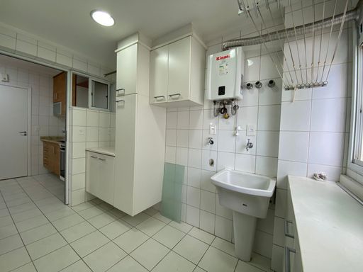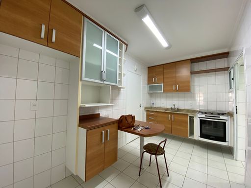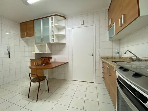 Apartamento com 88m² de área construída, 3 dormitórios sendo 1 suíte, sala para 2 ambientes com varanda, cozinha ampla com armários, banheiro social, área de serviço separada, aquecimento a gás, entrada social e de serviço, piso laminado na sala e dormitórios e 3 vagas de garagem cobertas.