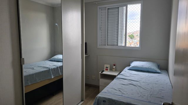 Apartamento com 60m² de área construída, 3 dormitórios com armários planejados, sala para 2 ambientes com varanda, piso laminado na sala e dormitórios, cozinha americana com armários, banheiro social e 1 vaga de garagem.