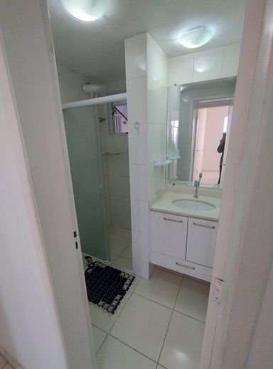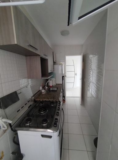 Apartamento com 60m² de área construída, 3 dormitórios com armários, sala para 2 ambientes com sacada, andar alto, cozinha com armários e eletrodomésticos, piso de cerâmica em todos os ambientes, banheiro social e 1 vaga de garagem.