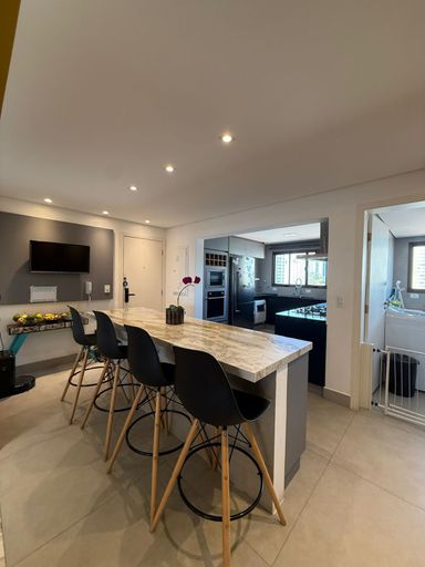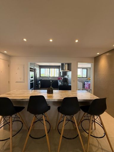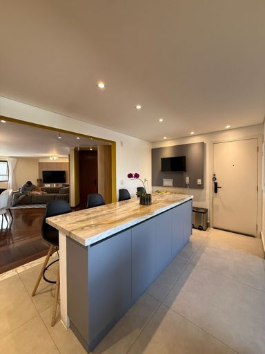 Apartamento com 200m² de área construída, apartamento recém reformado, 5 dormitórios sendo 2 suítes, sala de jantar, sala de estar com varanda, cozinha ampla com armários planejados, móveis planejados em todos os ambientes, 4 banheiros e lavado, depósito privativo na garagem e 4 vagas de garagem cobertas.