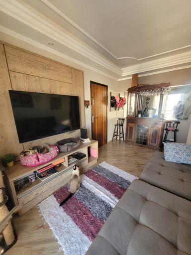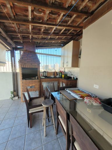 Cobertura com 140m² de área construída, 2 dormitórios sendo 1 suíte, banheiro social, piso laminado na sala e dormitórios, cozinha ampla com armários, área gourmet com churrasqueira e 1 vaga de garagem coberta.