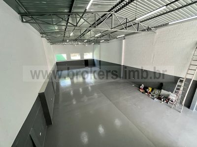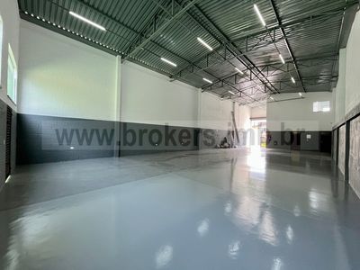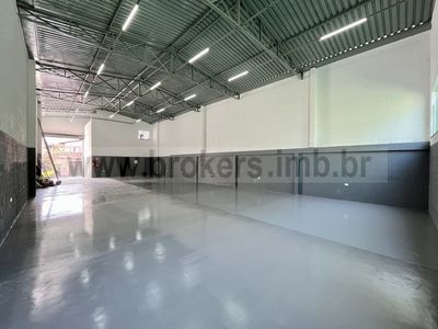 Galpão com 350 M² de área construída, pé direito alto, mezanino, 3 banheiros (sendo 1 pne), piso com pintura epoxi,porta automatizada e 03 vagas de garagem.