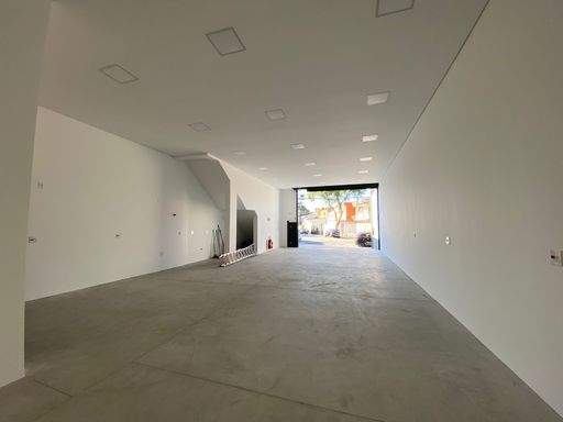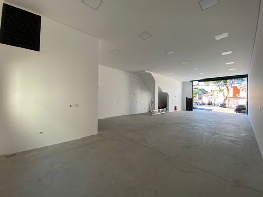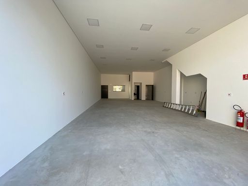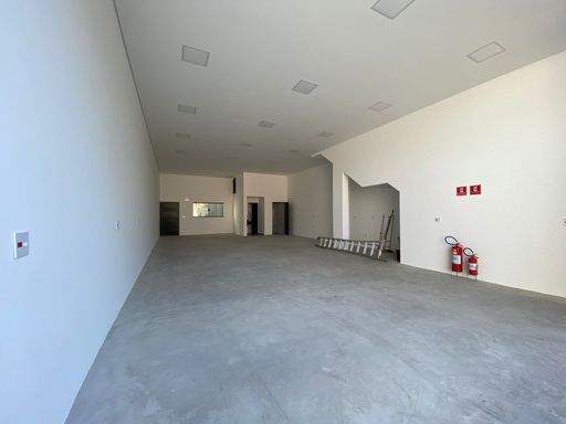 Salão Comercial com 160m² de área construída, 2 banheiros, pé direito de 4m² e 2 vagas de garagem.