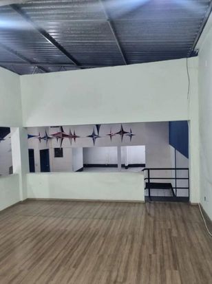 Salão Comercial com 500m² de área construída, pé direito de 8 metros, mezanino, 3 banheiros e 4 vagas de garagem.