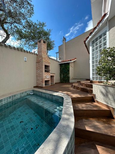 Sobrado com 137m² de área construída, 2 dormitórios sendo 2 suítes, sala em conceito aberto, cozinha com armários planejados, sala de televisão podendo reverter para o 3 dormitório, banheiro social, lavabo, área gourmet com 2 churrasqueiras, piscina aquecida e 4 vagas de garagem.