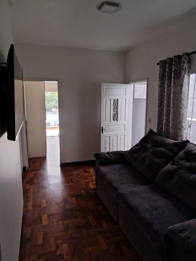Sobrado com 132m² de área construída, sala para 2 ambientes, cozinha ampla com armários, 2 dormitórios com varanda, banheiro social, lavanderia, piso de cerâmica e 2 vagas cobertas.