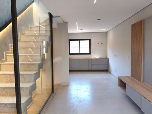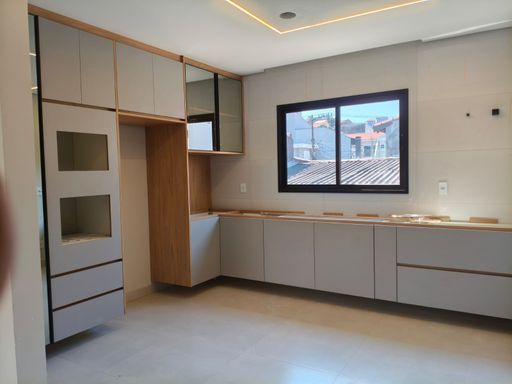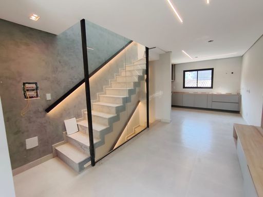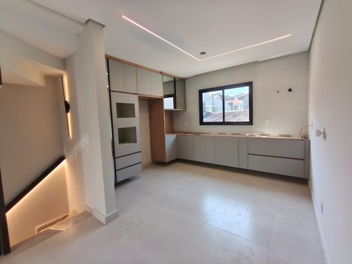 Sobrado novo com 110m² de área construída, 2 dormitórios sendo os 2 suítes, closet, infraestrutura para ar condicionado, tubulação para água quente em todos os banheiros e cozinha, piso porcelanato, sala de jantar com varanda, cozinha americana com armários, lavabo, área gourmet e 2 vagas de garagem.