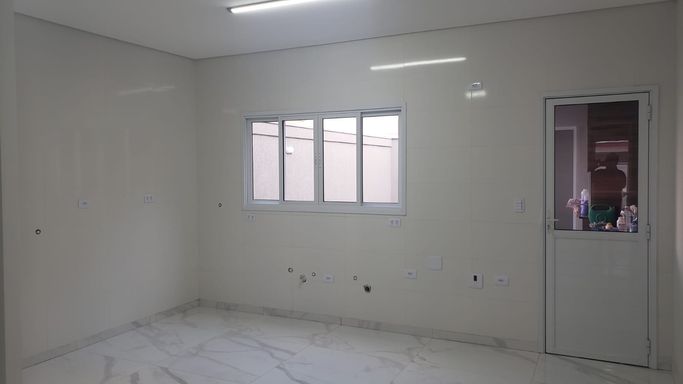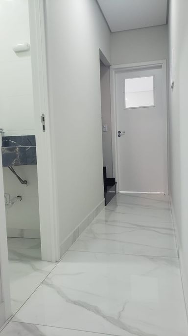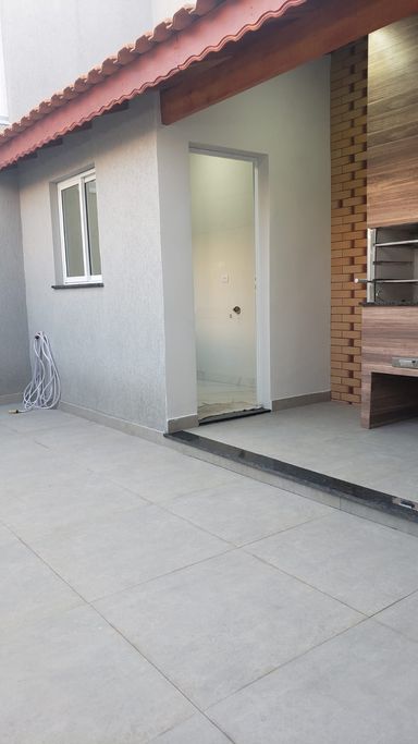 Sobrado novo com 183m² de área construída, sala para 2 ambientes, jardim de inverno, cozinha em conceito aberto, piso porcelanato, lavabo, área gourmet com churrasqueira a carvão, 3 dormitórios sendo todos suítes, piso laminado nos dormitórios, persianas blackout, suíte principal com varanda, imóvel com acabamento de 1 linha em todos os ambientes, sótão com 15m² de área, infraestrutura para ar condicionado, sanitários com tubulação para agua quente para torneiras dos sanitários e cozinha e 4 vagas de garagem sendo 2 cobertas.