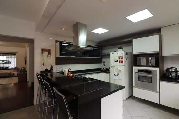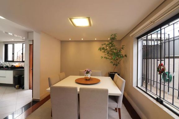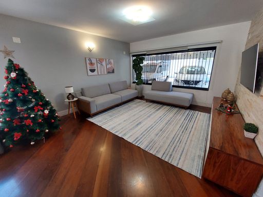 Sobrado com 255m² de área construída em terreno de 290m², 3 dormitórios sendo 1 suíte e closet, sala de estar, sala de jantar, cozinha em ilha com armários planejados, piso de madeira na sala e dormitórios, lavabo, banheiro social, móveis planejados em todos os ambientes, quintal amplo, lavanderia, área gourmet com churrasqueira e 5 vagas de garagem.