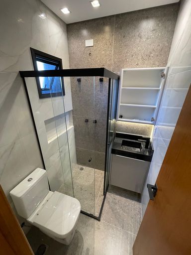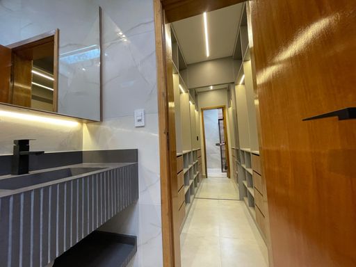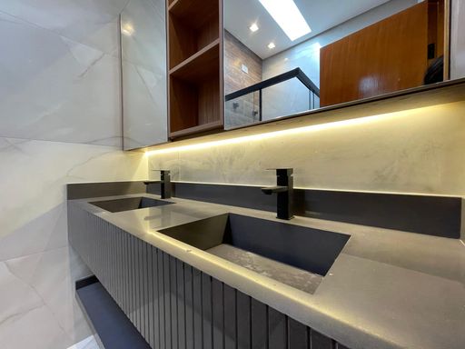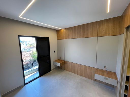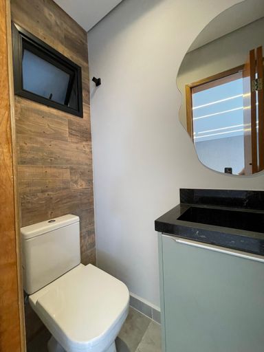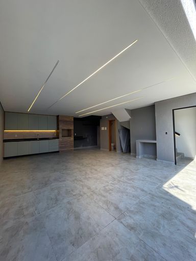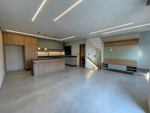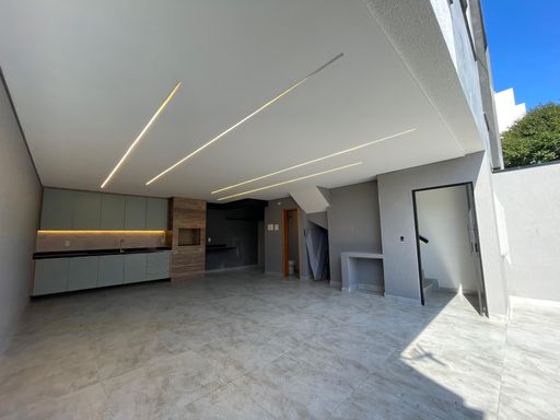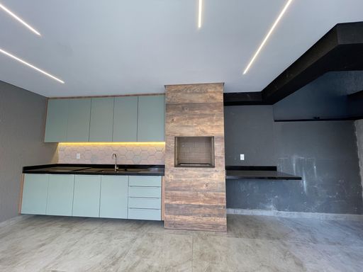 Sobrado novo com 156m² de área construída, 3 dormitórios sendo 1 suíte, closet, acabamento de 1 linha e iluminação de led em todos os ambientes, banheiro social, sala para 2 ambientes com varanda, cozinha gourmet em conceito aberto com armários, infraestrutura para ar condicionado, tubulação para água quente, área gourmet com churrasqueira a carvão e 4 vagas de garagem.